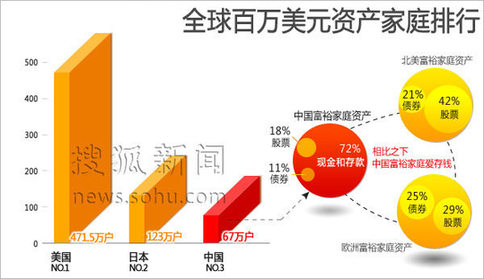 国际知名波士顿咨询公司(BCG)发布的最新报告显示,2009年中国财富规模较上一年增长28%,达到5.4万亿美元,中国已有67万户百万美元资产家庭,位列全球第三位,仅次于美国和日本。